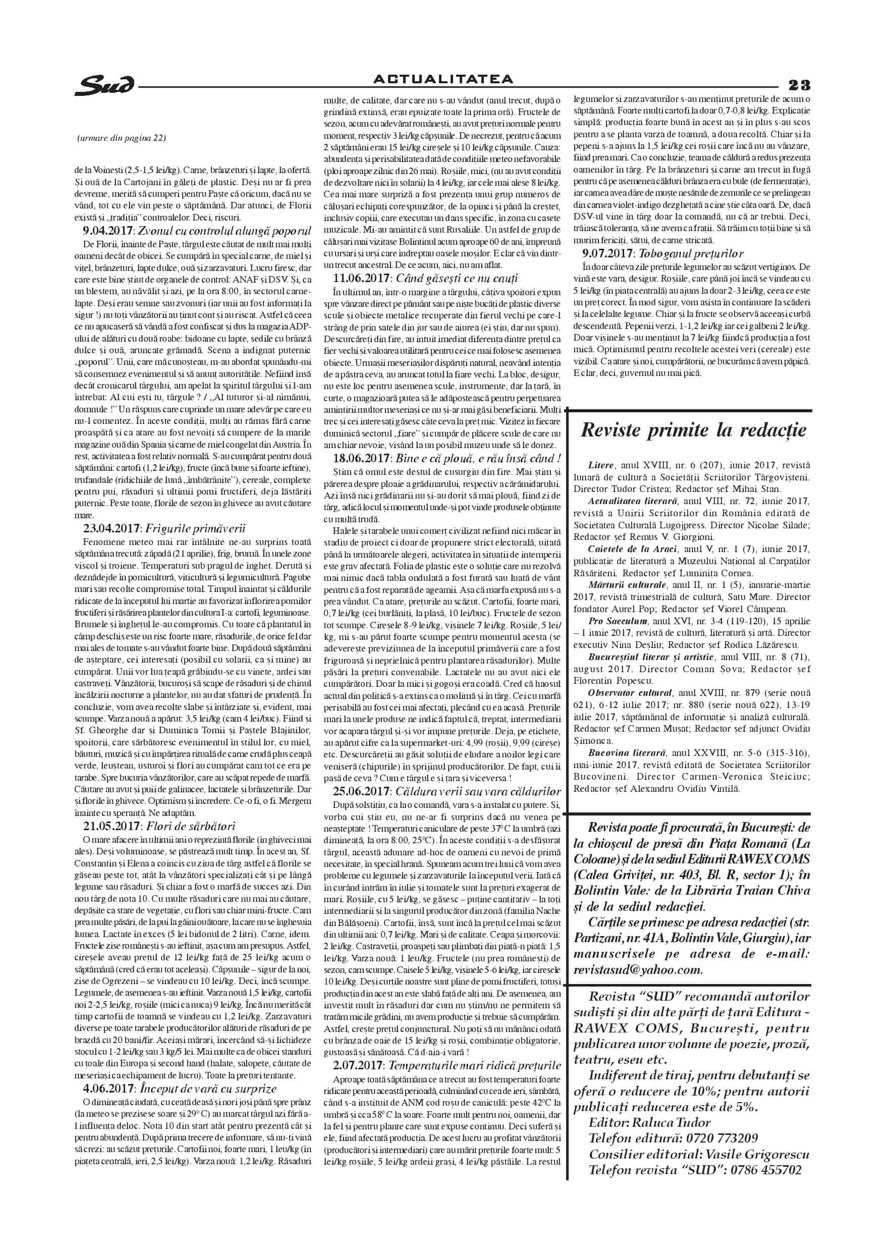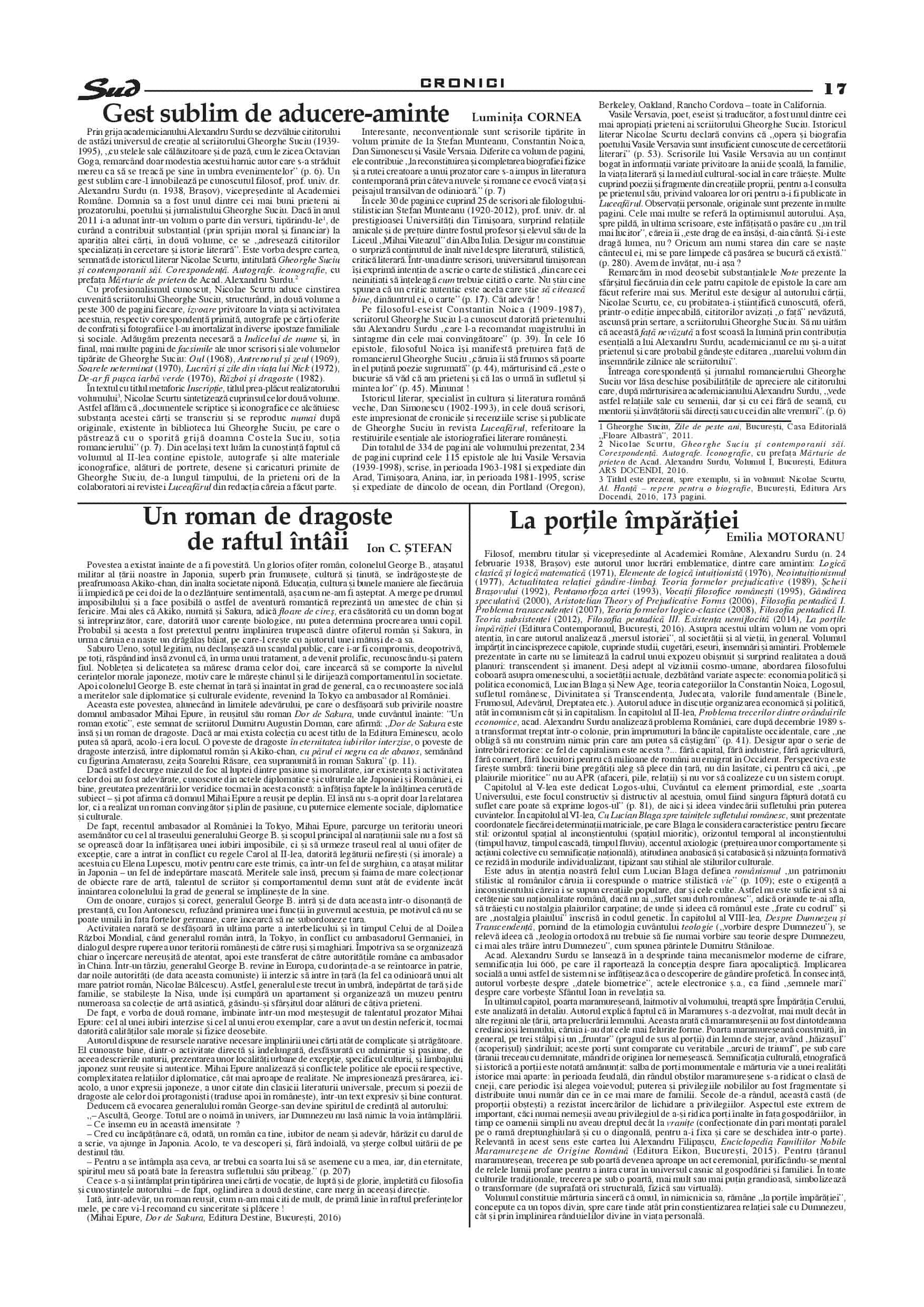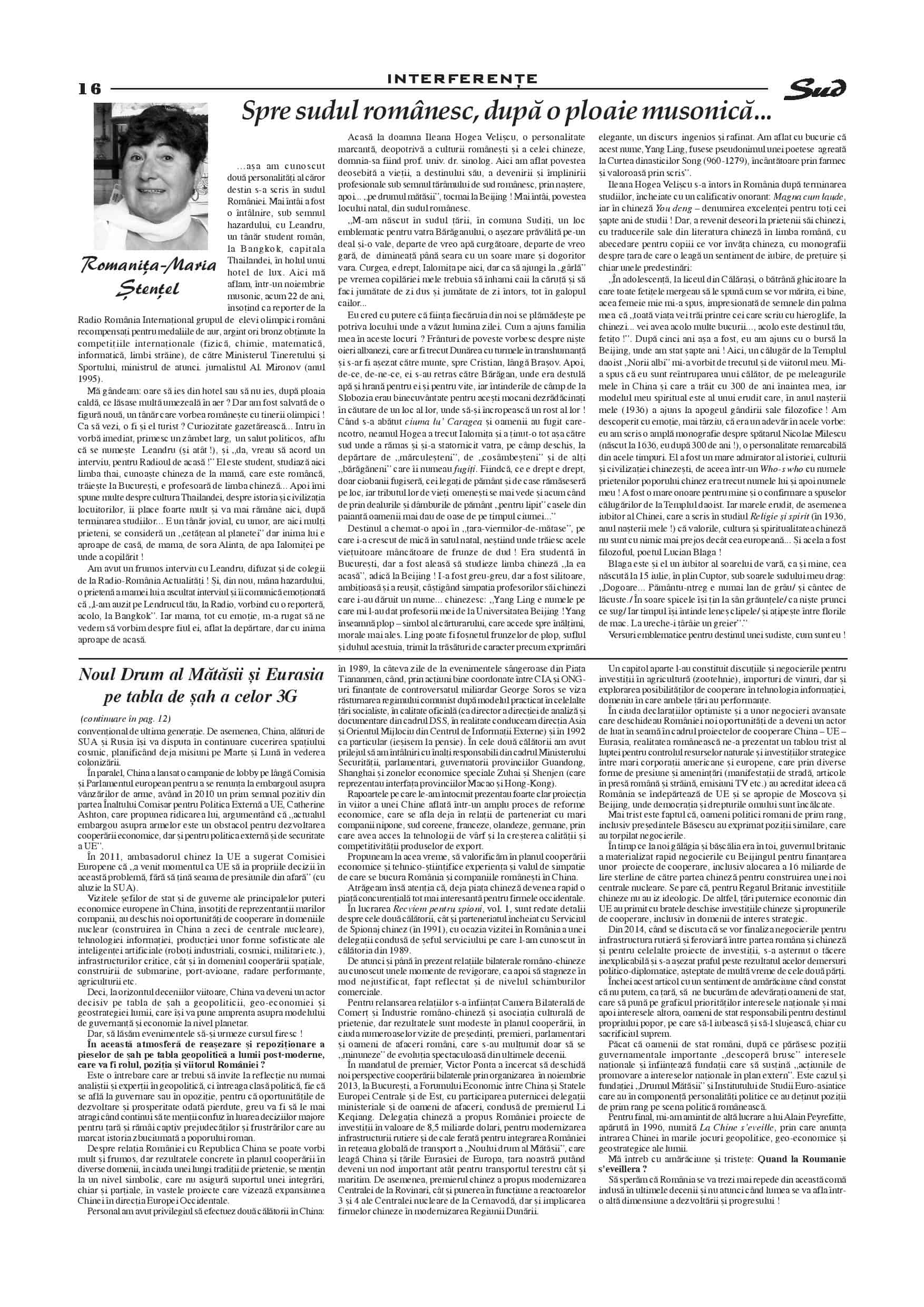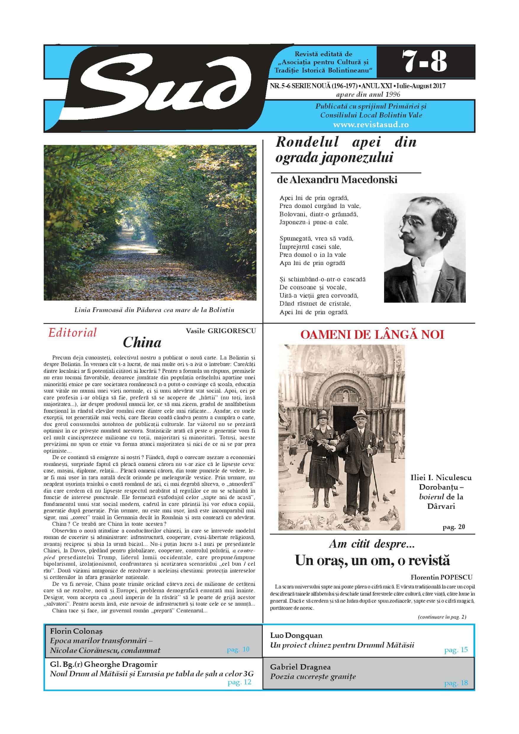 Așa cum ne-a obișnuit, Revista Sud apare cu două numere de excepție, ce condensează articole cu teme culturale, istorice, diplomatice, geopolitice, cât și informații de interes general.