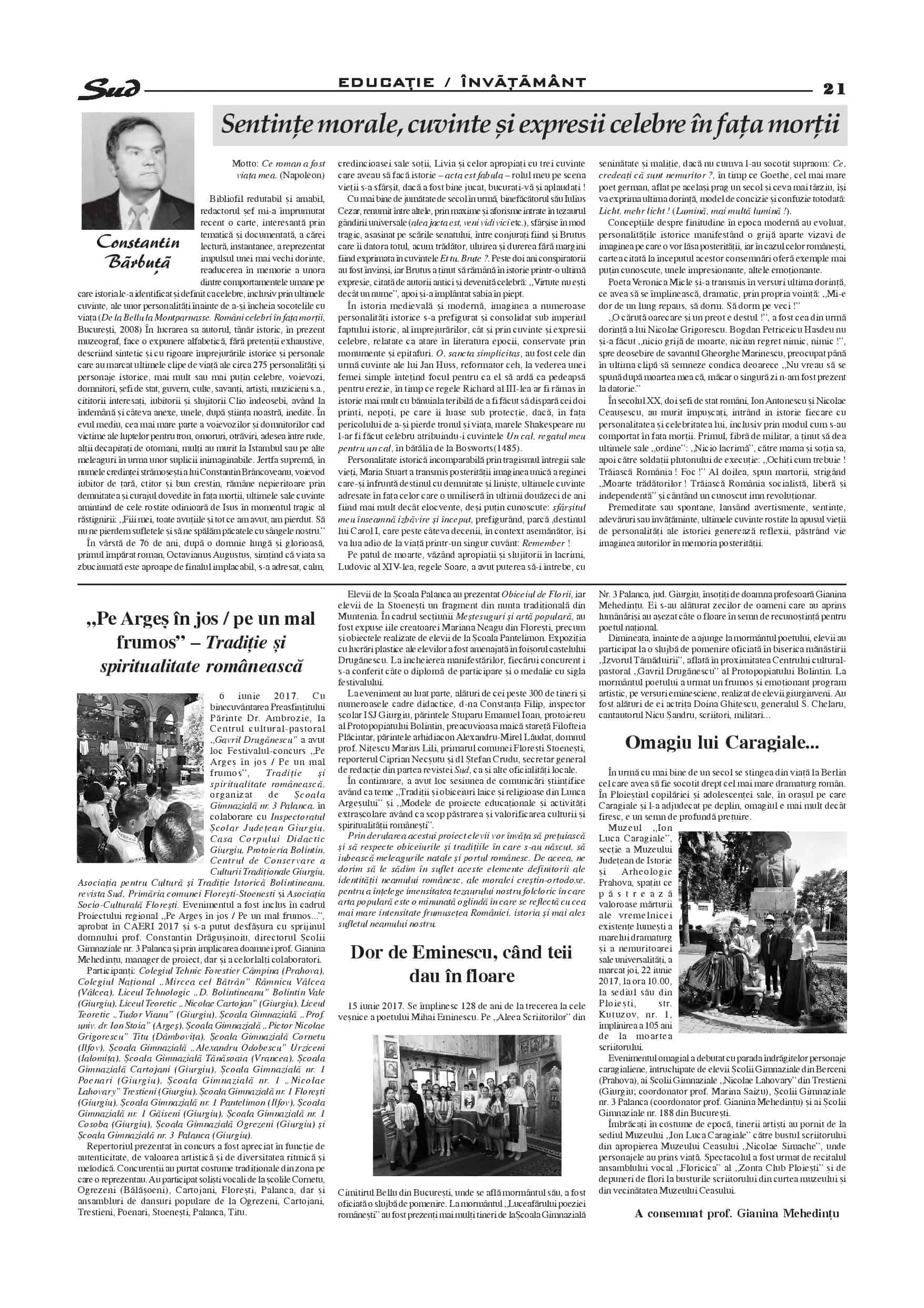 Felicităm autorii și realizatorii pentru calitatea materialelor și pentru munca depusă pentru apariția acestei reviste de mare ținută.