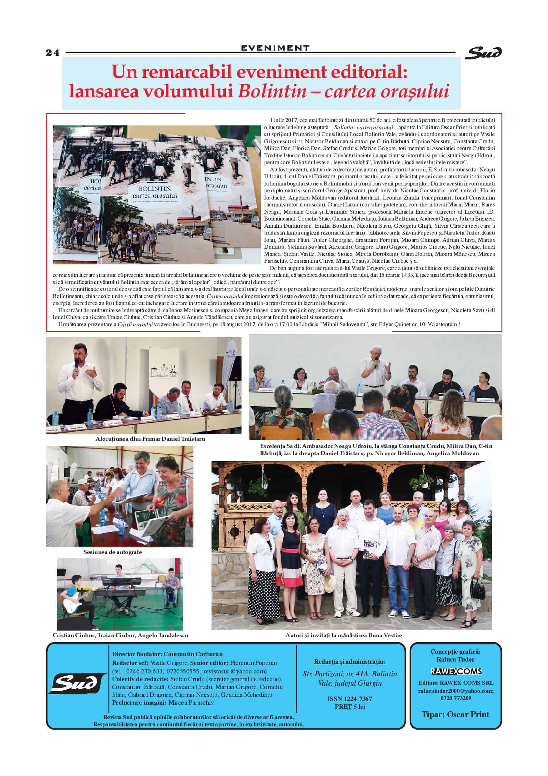 Așa cum a făcut-o până acum, Primăria Orașului Bolintin-Vale va sprijini apariția noilor numere din această revistă.